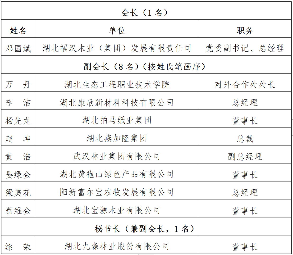 湖北省林业产业促进会 第三届理事会拟任负责人名单公示